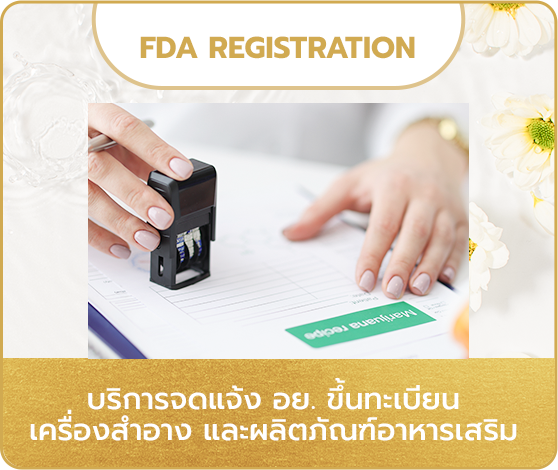 มีบริการรับจดทะเบียน อ.ย. ช่วยให้ท่านประหยัดเวลา และลดความยุ่งยากในการเตรียมเอกสาร บริการขึ้นทะเบียนผลิตภัณฑ์, การผลิต และการจำหน่ายสินค้าอย่างถูกต้องตามกฎหมาย ทั้งภายใน และต่างประเทศ อาทิเช่น จดแจ้งขึ้นทะเบียน อย. ตามมาตรฐานของกระทรวงสาธารณสุข (Food and Drug Administration Ministry of Public Health) ใบรับรองการผลิต และเครื่องหมายการค้า (Certificate of free sale)