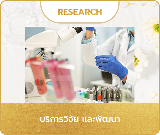 บริการวิจัย และพัฒนาเพราะเรารู้ว่าสินค้าเป็นหัวใจสำคัญในการตอบสนองความต้องการของลูกค้า ฉะนั้นบริษัท และแผนก R&D จึงคัดสรรการสกัดจากธรรมชาติ ทั้งในและต่างประเทศ เพื่อให้ได้ผลิตภัณฑ์ที่มีคุณภาพและปลอดภัย โดยทางบริษัท มีสูตร ที่วิจัยและพัฒนาขึ้นเอง สำหรับให้ลูกค้าเลือกหลากหลายสูตร อีกทั้งยังสามารถวิจัยสูตรจากผลิตภัณฑ์ตามความต้องการของลูกค้าได้ เพื่อความมั่นใจ ให้ท่านได้พึงพอใจในตัวผลิตภัณฑ์ และราคาที่ดีที่สุด